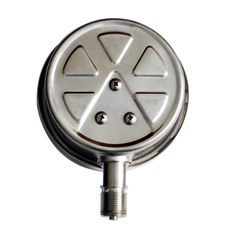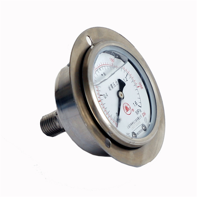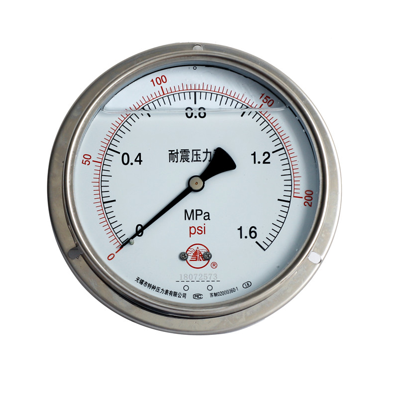 耐震不銹鋼壓力表在表體內充裝阻尼液并且加裝阻尼裝置,使壓力表起到減震、抗震的作用,適應劇烈振動環境,耐受脈動介質及沖擊載荷。耐震不銹鋼壓力表全部采用不銹鋼材料制造,主要零件采用不銹鋼SUS316L材料,適用于有腐蝕性氣體環境,可檢測腐蝕性較強介質的壓力或真空,壓力表指示穩定清晰。廣泛應用于石油、化工、機械、冶金等工業部門壓力測量。本公司可根據用戶需要,設計、制造特殊用途的耐震不銹鋼壓力表產品,歡迎來人來電、來函洽談!