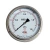 耐震不銹鋼壓力表在表體內充裝阻尼液并且加裝阻尼裝置,使壓力表起到減震、抗震的作用,適應劇烈振動環境,耐受脈動介質及沖擊載荷。耐震不銹鋼壓力表全部采用不銹鋼材料制造,主要零件采用不銹鋼SUS316L材料,適用于有腐蝕性氣體環境,可檢測腐蝕性較強介質的壓力或真空,壓力表指示穩定清晰。廣泛應用于石油、化工、機械、冶金等工業部門壓力測量。